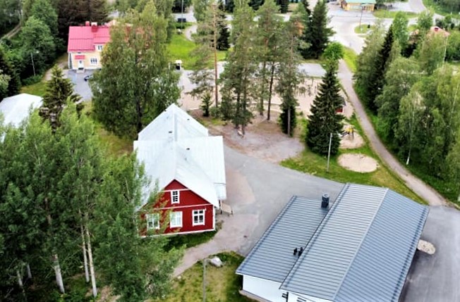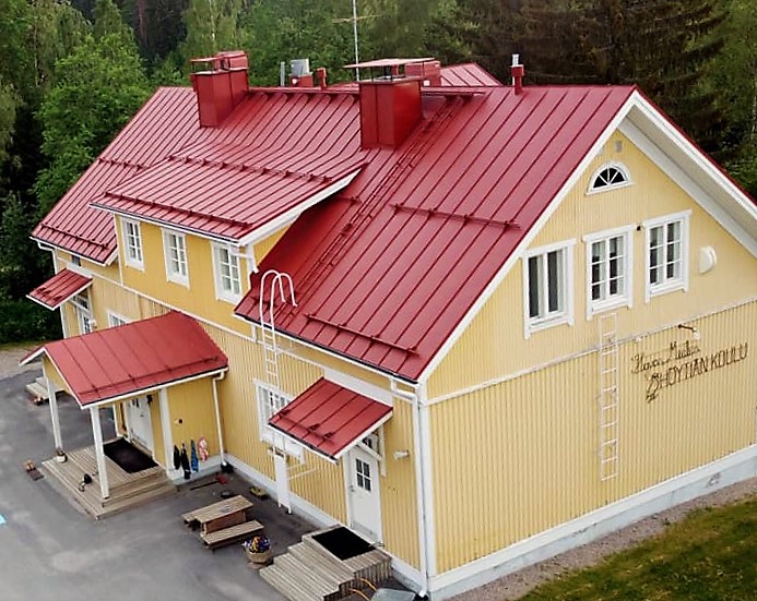 Punainen koulurakennus on rakennettu jo vuonna 1912. 1930-luvulla rakennetussa keltaisessa rakennuksessa sijaitsee luokkien lisäksi koulun ruokala.